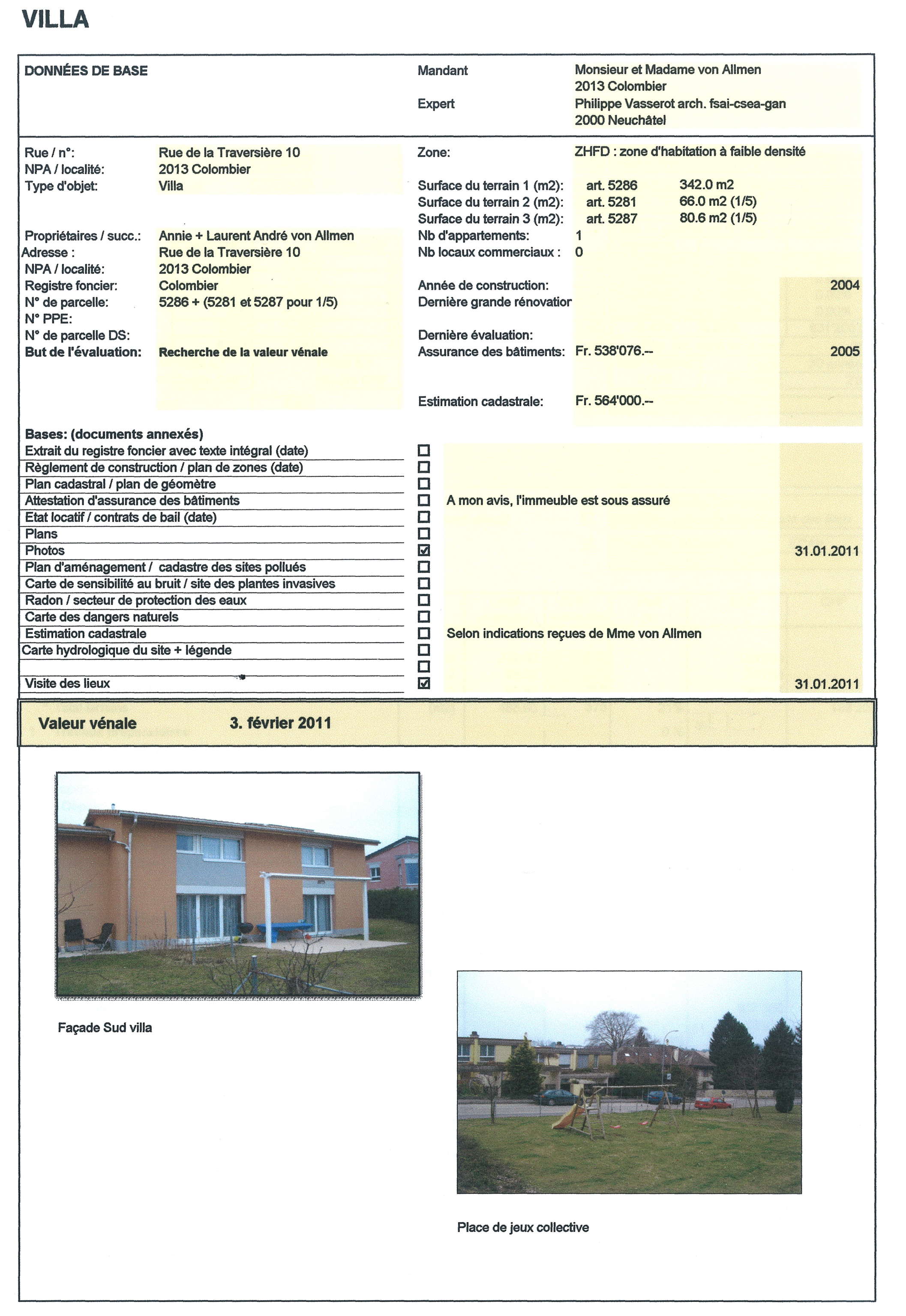 Une copie des plans, maison numéro 4 (toute à droite du lotissement). Estimation cadastrale et assurance selon expertise.